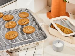 Tava noastră mare de copt de 18 x 13 inchi este răspunsul ușor de manevrat pentru loturi mari de orice. Utilizați pentru coacere, prăjire și multe altele. Dispunând de o acoperire ceramică netoxică, alunecoasă, coacerea sănătoasă nu a fost niciodată mai ușoară.