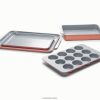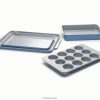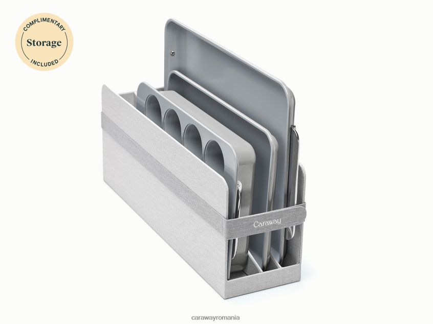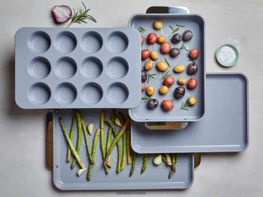 fă cunoștință cu setul de 5 bucăți de vase de copt acoperit cu ceramică de la Chimen, care nu conține substanțe chimice toxice. acest set include 2 foi de copt, o tavă pentru brioșe, o tavă dreptunghiulară și organizatoare de dulap.
