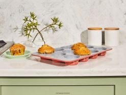 Tava noastră pentru brioșe cu 12 căni vă permite să coaceți produse fără niciun fel de rău: folosiți-l pentru brioșe cu afine, mușcături de albuș de ou și multe altele. Dispunând de o acoperire ceramică non-toxică, natural alunecoasă, această tigaie durabilă face coacerea sănătoasă (și curățarea) mai ușoară ca niciodată.