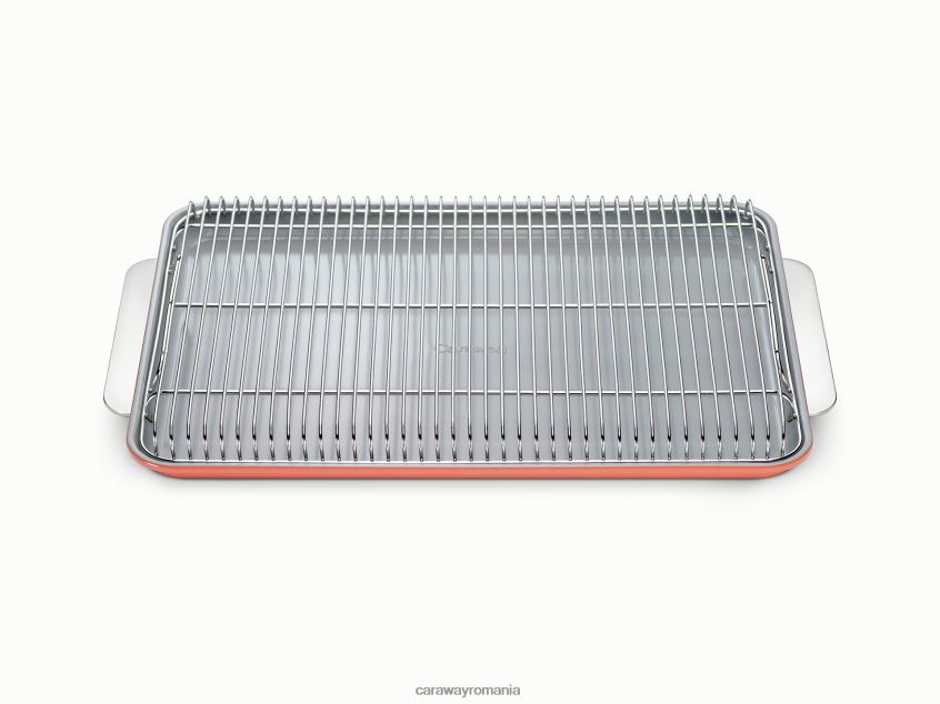 pentru toate nevoile dvs. de copt, duoul nostru mare de foi de copt și suport de răcire este conceput pentru a vă face viața în bucătărie mult mai ușoară. Tava mare de copt de 18 x 13 inchi are o suprafață ceramică netoxică, alunecoasă în mod natural și este dimensionată perfect pentru ca suportul de răcire din oțel inoxidabil de 18 x 13 inchi să se cuibărească în interior.