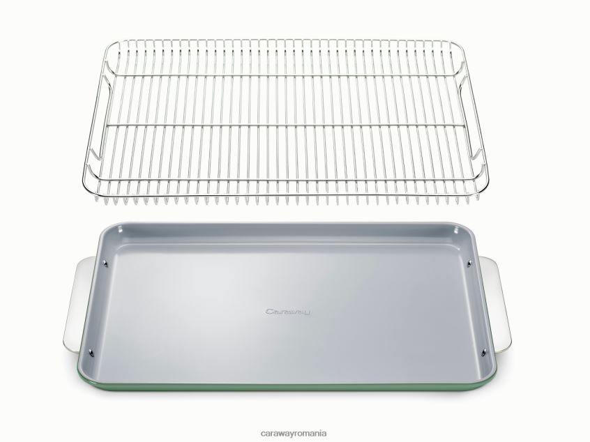 pentru toate nevoile dvs. de copt, duoul nostru mare de foi de copt și suport de răcire este conceput pentru a vă face viața în bucătărie mult mai ușoară. Tava mare de copt de 18 x 13 inchi are o suprafață ceramică netoxică, alunecoasă în mod natural și este dimensionată perfect pentru ca suportul de răcire din oțel inoxidabil de 18 x 13 inchi să se cuibărească în interior.