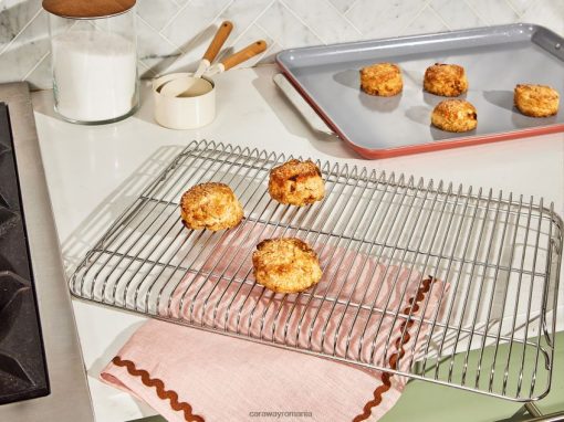 pentru toate nevoile dvs. de copt, duoul nostru mare de foi de copt și suport de răcire este conceput pentru a vă face viața în bucătărie mult mai ușoară. Tava mare de copt de 18 x 13 inchi are o suprafață ceramică netoxică, alunecoasă în mod natural și este dimensionată perfect pentru ca suportul de răcire din oțel inoxidabil de 18 x 13 inchi să se cuibărească în interior.