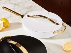 Tigaia noastră din ceramică (capac inclus) permite gătitul sănătos în bucătărie, fără substanțe chimice dăunătoare: folosiți pentru preparate cu stoc, petreceri și multe altele. Având un interior acoperit cu ceramică non-toxică, această tigaie antiaderentă durabilă face gătitul mai ușor ca niciodată, curățarea (îndrăznim să spunem) plăcută și adaugă un plus de culoare oricărei case.